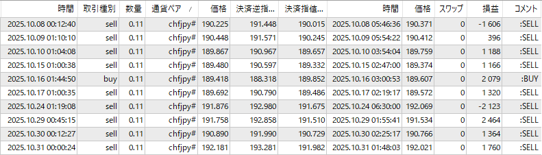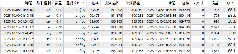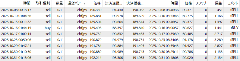 取引回数はたった1回、かつてはこのEAではCHFJPYより長期に渡り成績良かったのですがさっぱりです。