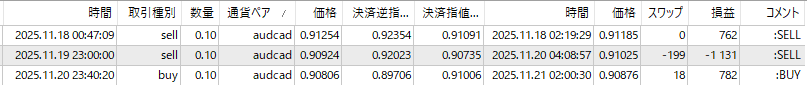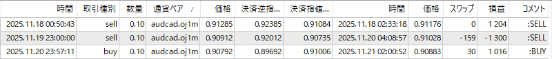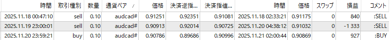 11月のAUDCADは、各社3回ずつの取引となりました。