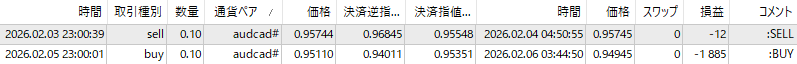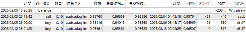 AUDCAD取引状況ですが、今月も全社マイナスの相変わらずな状況です。