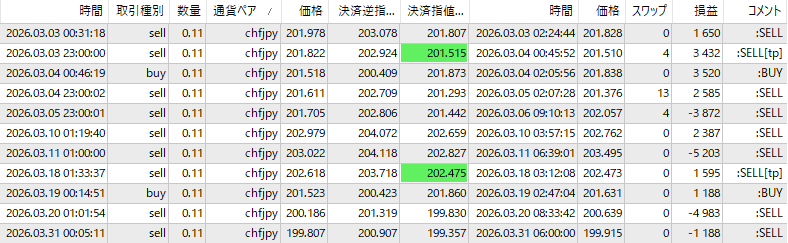 記事更新かなり遅れましたが、2026年3月の結果を報告します。